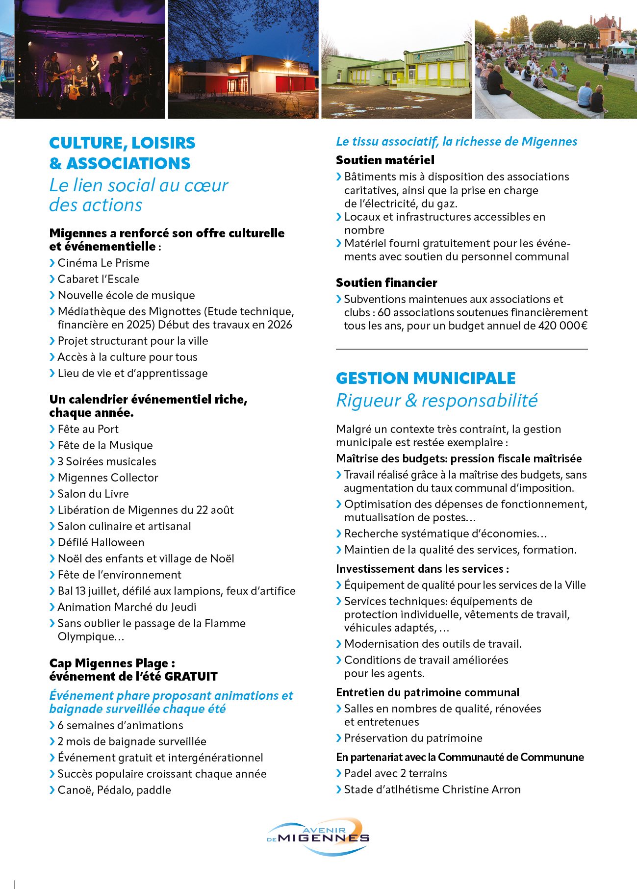 vous trouverez les deux dernières pages de notre Bilan de Mandat 2020-2025. Vous constaterez que Migennes à su investir, transformer et tenue le cap du développement ! Votez en nombre le 15 Mars dès le Premier Tour des élections Municipales ! Source Facebook