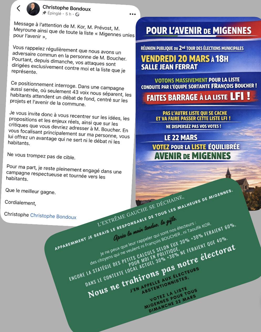 Après le premier tour, nous avons effectivement pris l’initiative de proposer une alliance à la liste de Christophe Bondoux. Pourquoi ? Parce que beaucoup de Migennoises et de Migennois nous ont dit sur le terrain qu’ils aspiraient au changement et qu’ils ne souhaitaient plus voir se poursuivre la gestion actuelle de François Boucher.