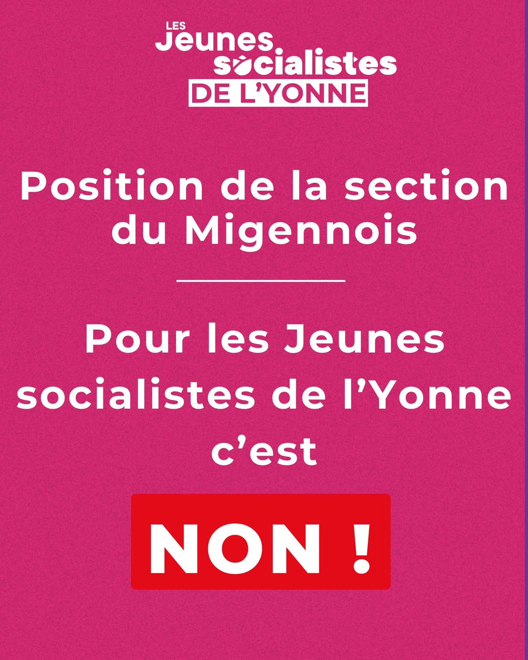 En conséquences les jeunes socialistes de l’Yonne se désolidarisent pleinement de la décision prise par la section du migennois quand au soutien qu’elle a apporté à une liste candidate à Migennes.